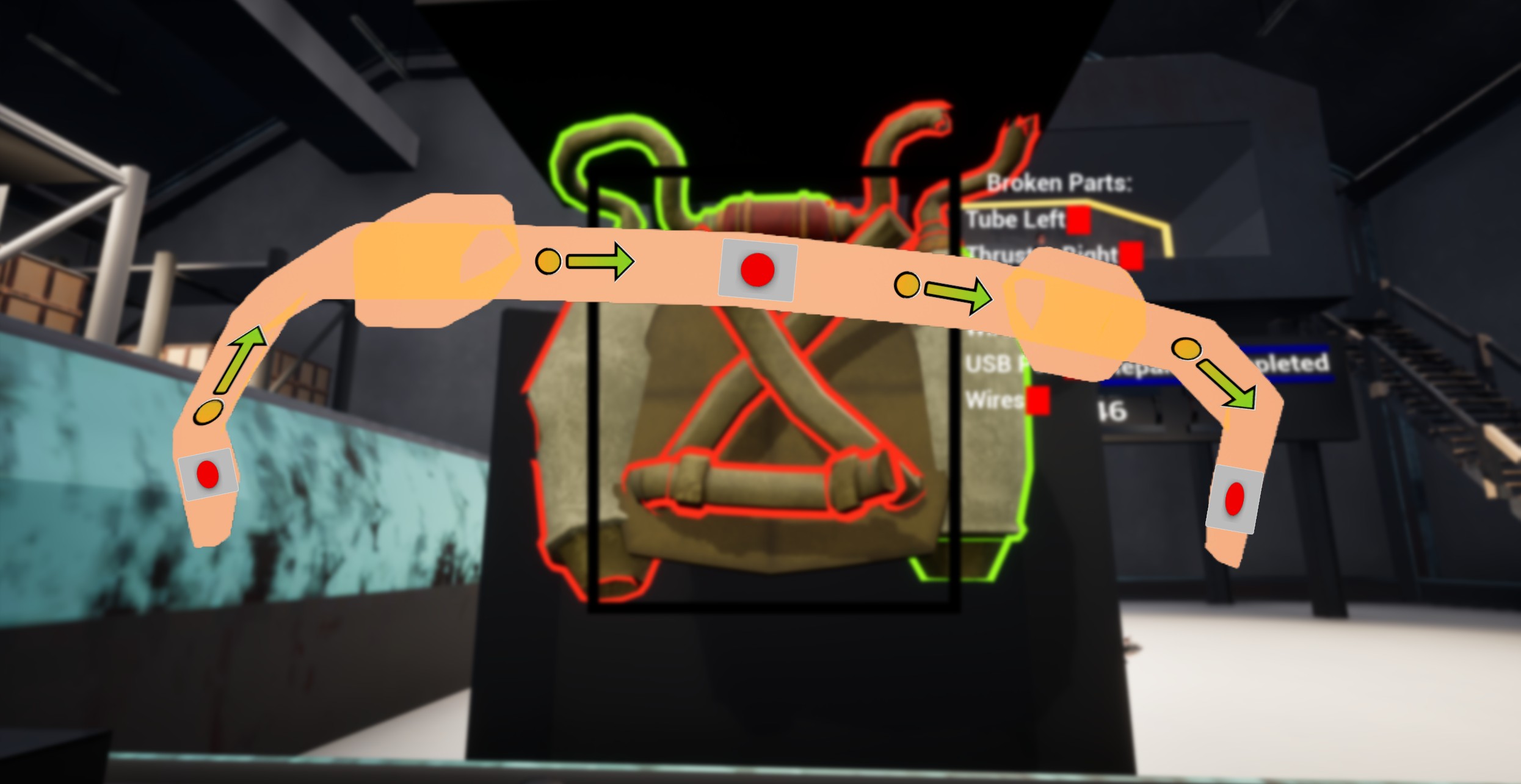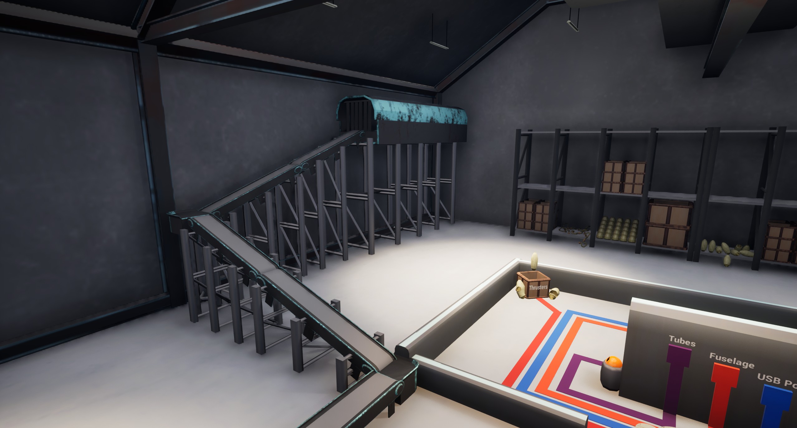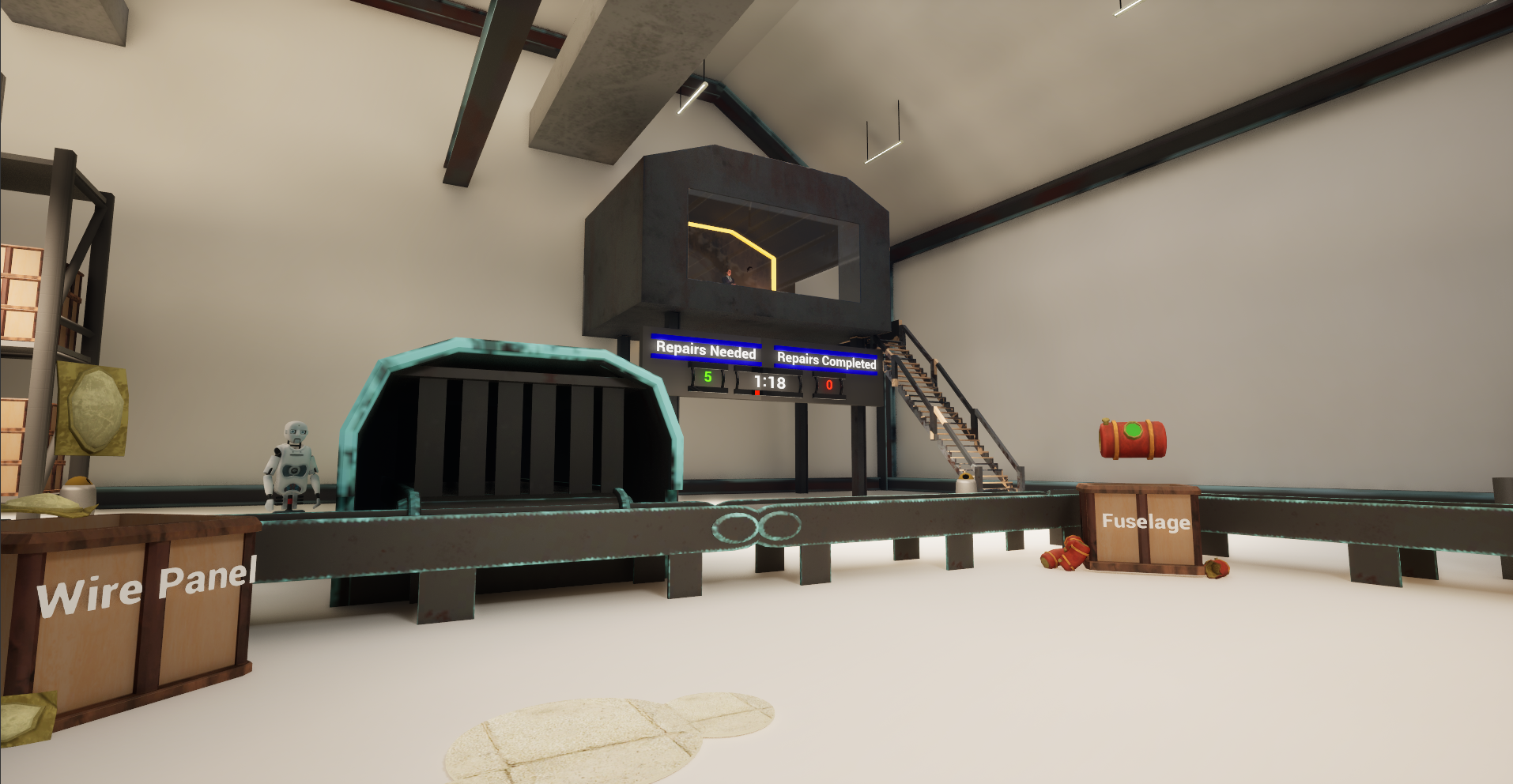 You play as the last human factory worker in a warehouse dedicated to Jetpack manufacturing and repair! However your boss has been trying to find any excuse to get rid of you, demanding ever increasing quotas to reach every shift! You've been fed up with the factories state of cleanliness and refuse to walk around praising your stool of transportation as the best means to traverse your work space. Each Jetpack spawns with randomized broken parts and its up to you as the player to quickly analyze what parts are broken and what order is the fastest way to repair them in.